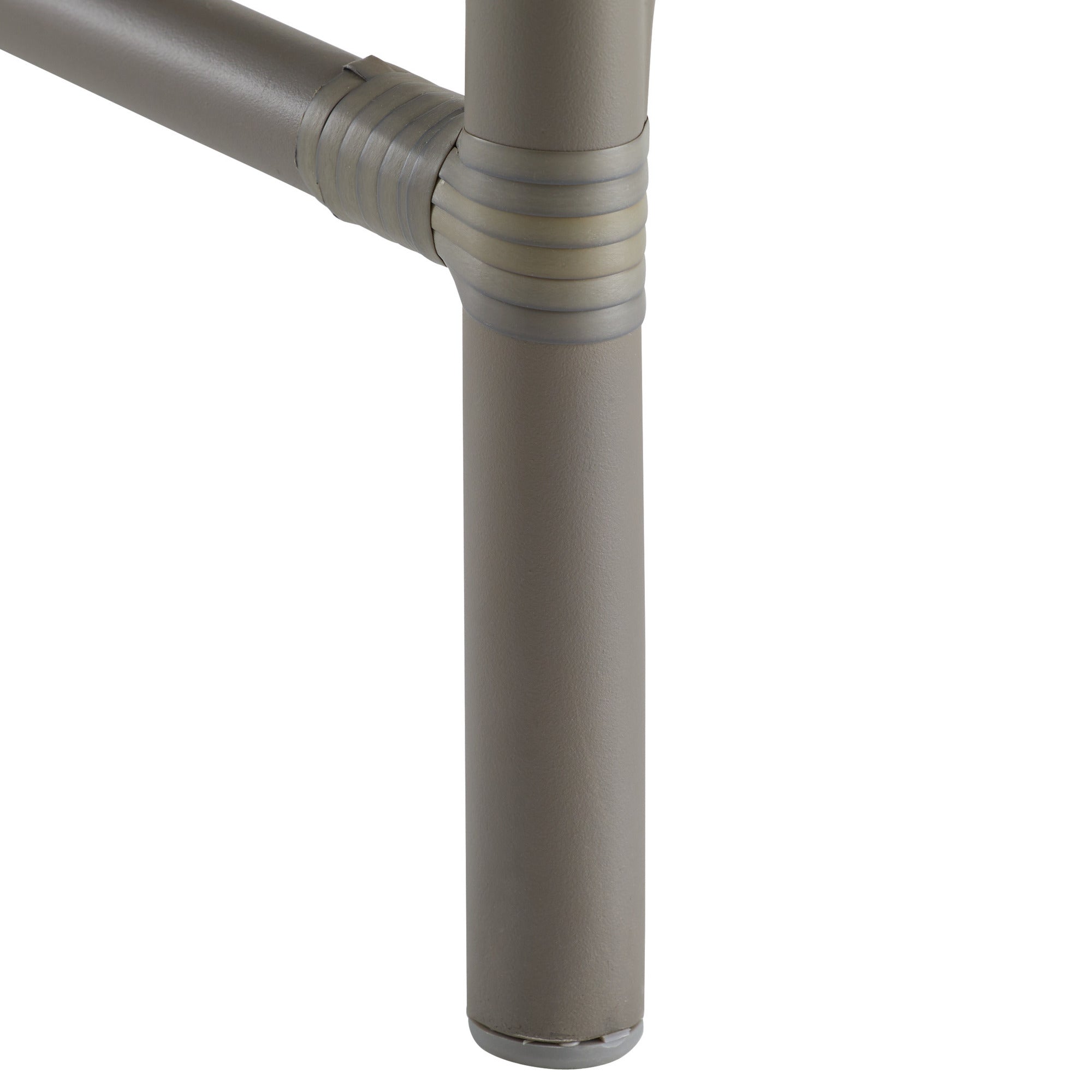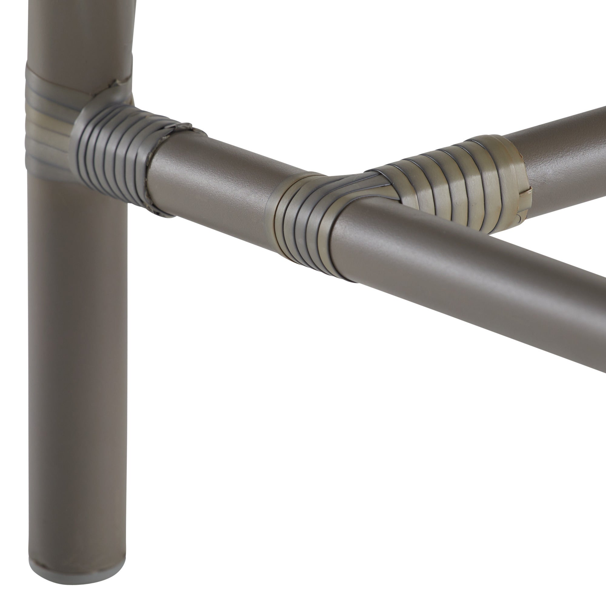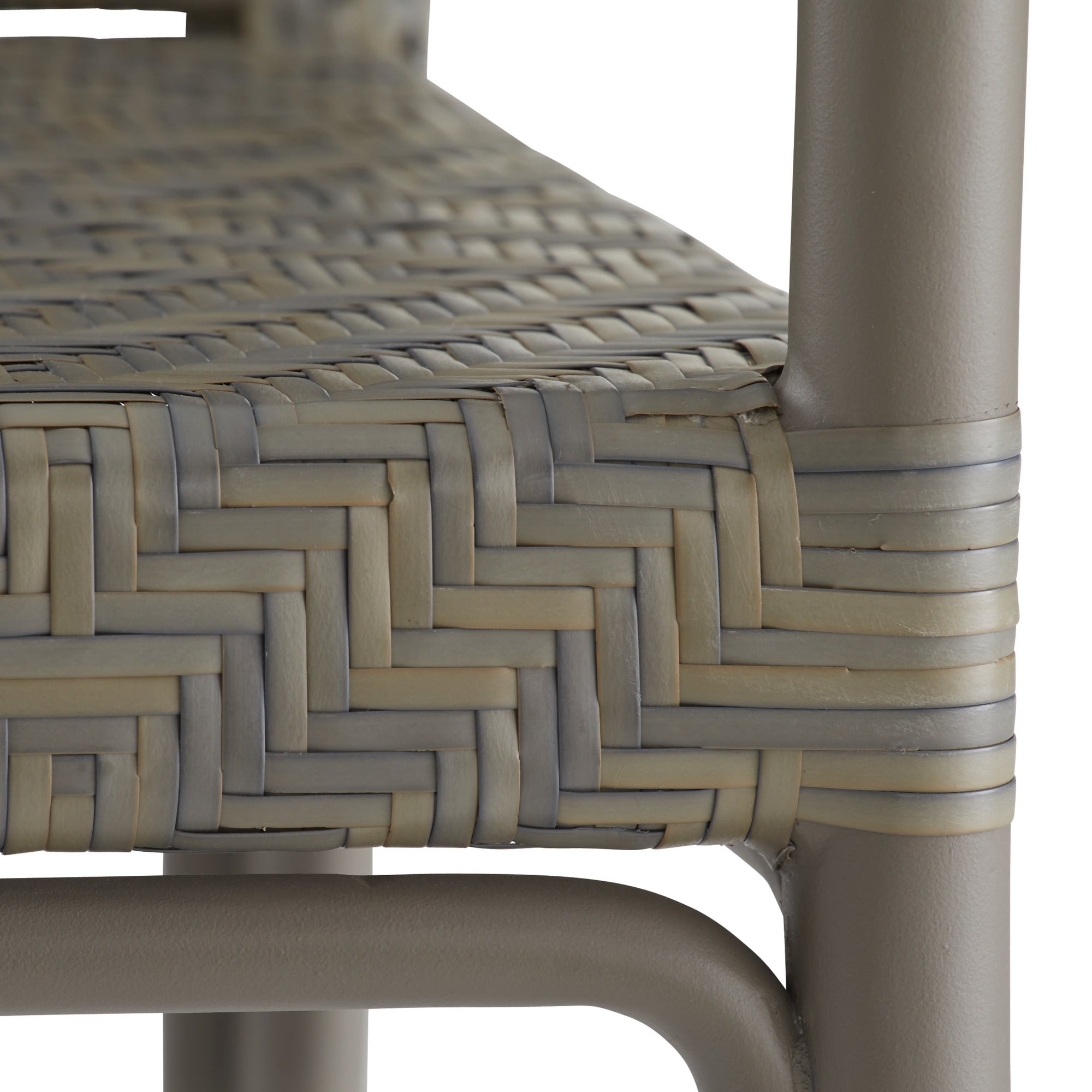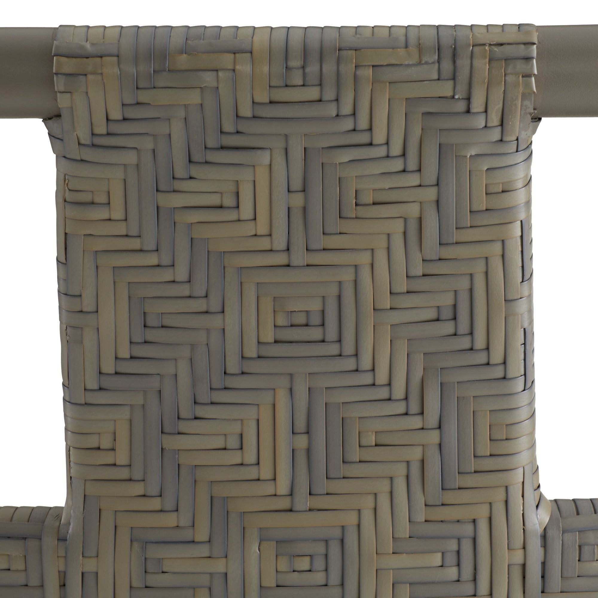 DescriptionA casual style of traditional rush-woven synthetic rattan gets a stylish update in element-resistant chartreux grey wicker weave. It features a uniquely designed back detail that resembles a woven tapestry. The matching powder-coated aluminum gray frame is effortlessly balanced for maximum comfort. Finish will vary.