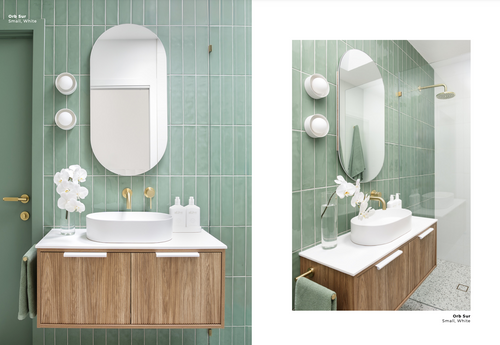 The Orb Collection is comprised of 6 wall light variations – Mirror, 1lt Short Arm, 1lt Long Arm, 3lt, Sur, Sur Mini and a pendant light.