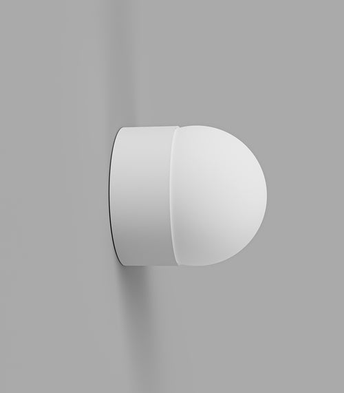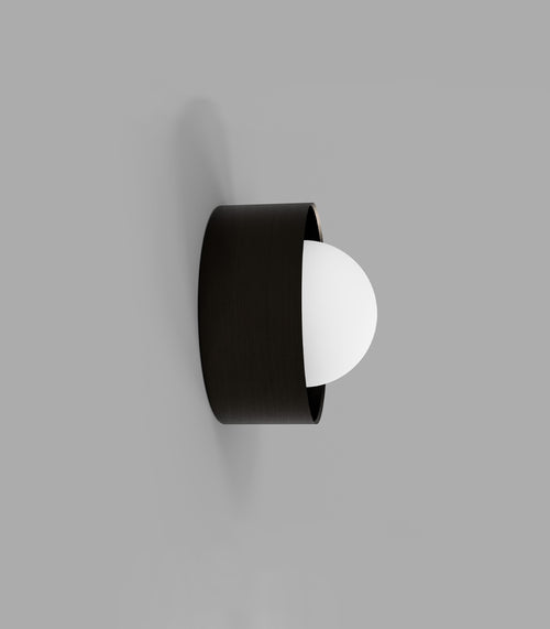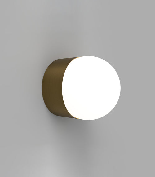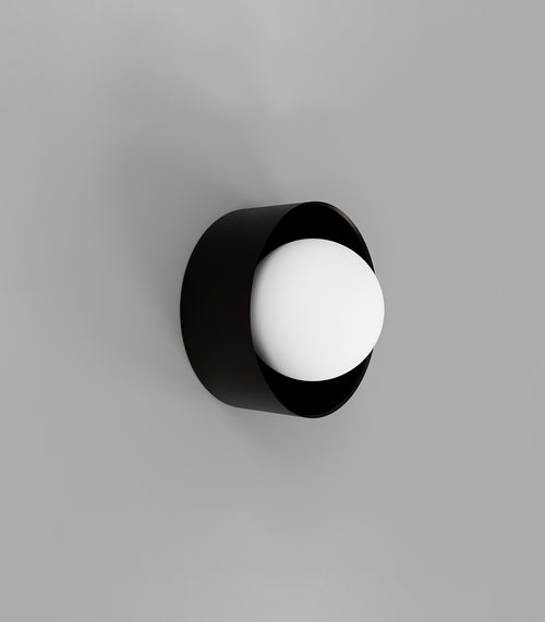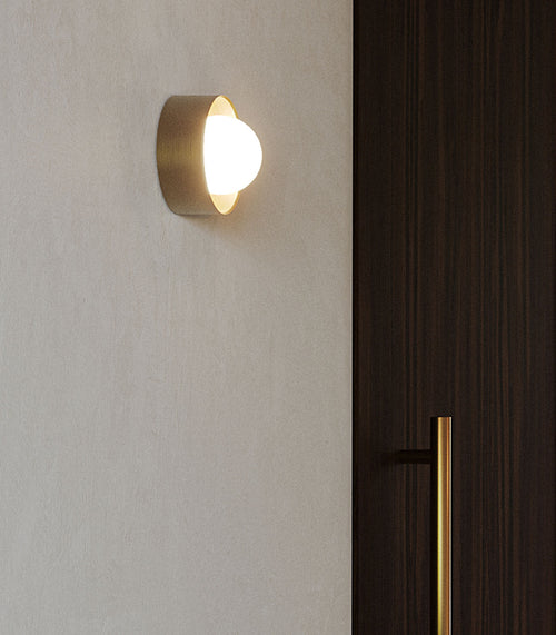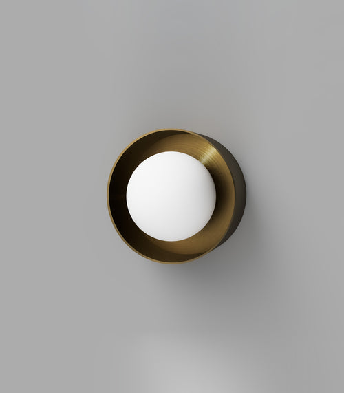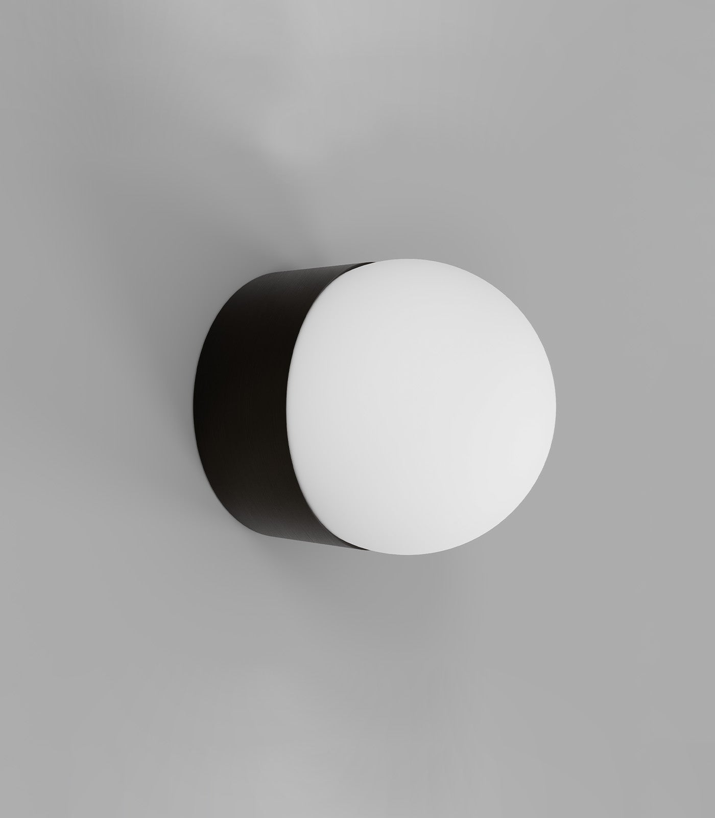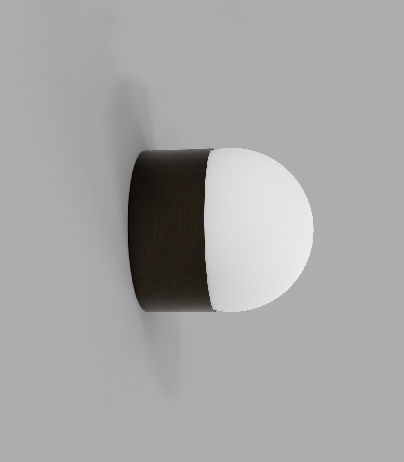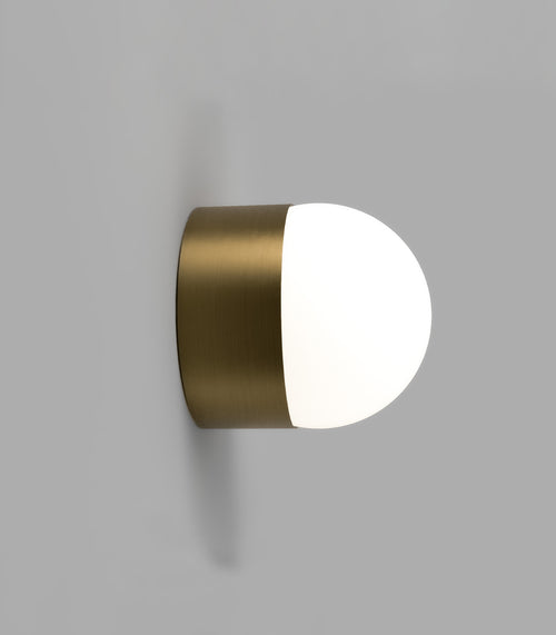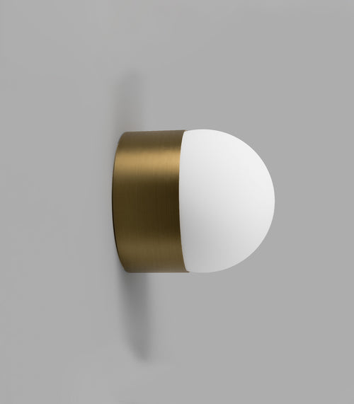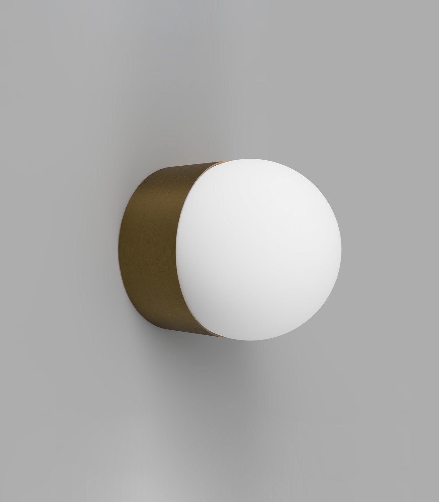 Orb Sur Wall Light by Lighting Republic takes the classic glass sphere of the Orb collection and incorporates an sleek frame, adding an extra element of depth to this most versatile wall light. The white variation features an aluminium frame while the old brass and iron feature a solid brass frame. The perfect sphere of opal glass emits a soft and diffused light and will sit comfortably in any interior setting.