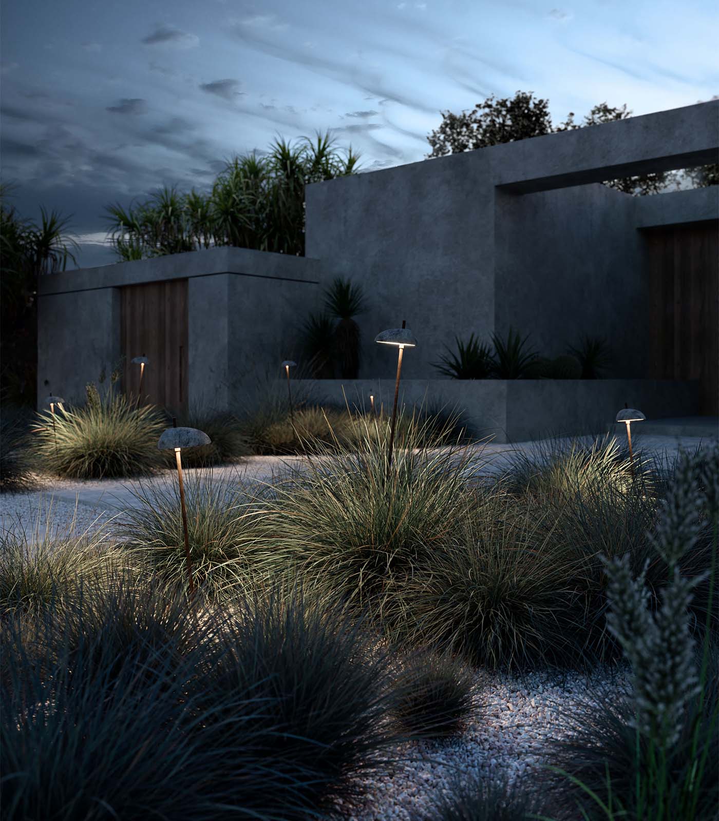 Designed for gardens and landscapes, its IP65-rated structure combines antique brass and terracotta with integrated LED. This spike light blends naturally into outdoor settings while providing durable, atmospheric lighting.