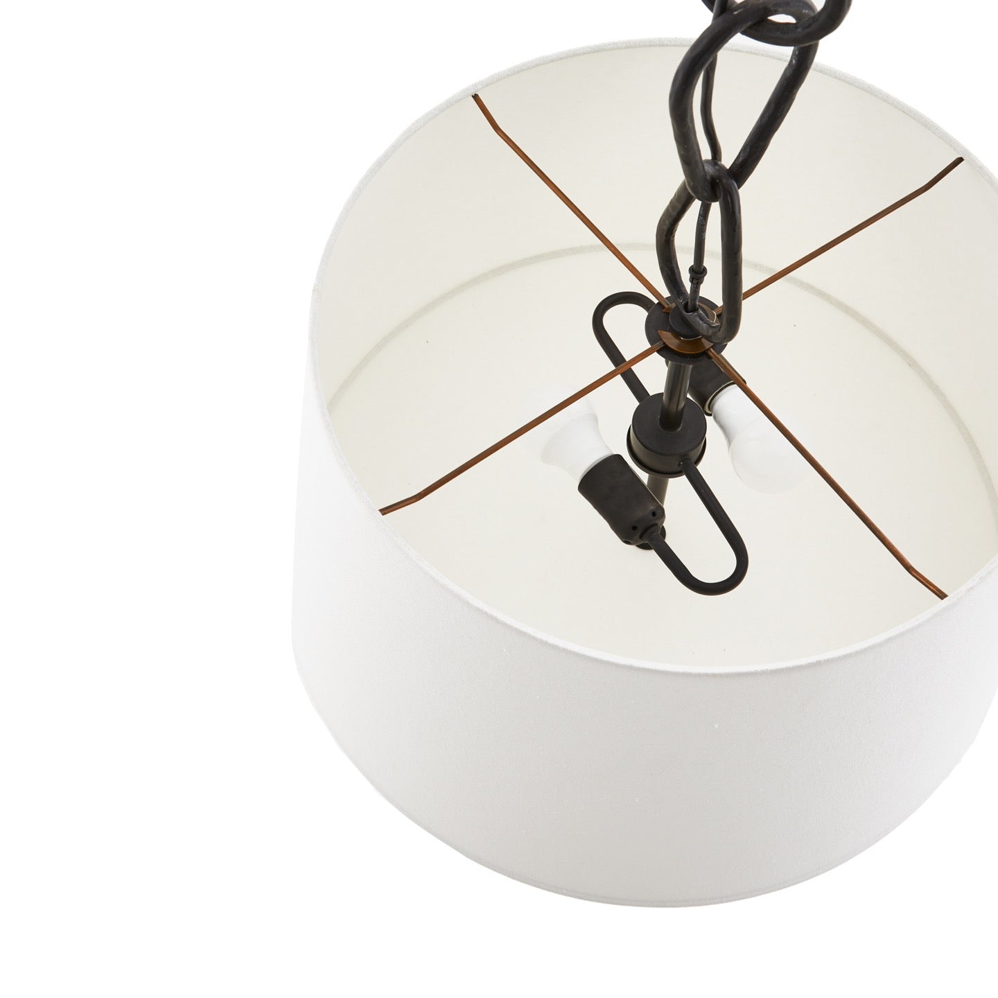 Materials 2 Light/Blackened Iron/Off-White Linen All Arteriors lighting pieces are re - wired with black wiring During the re-wiring process for AU/NZ certification this items ceramic sockets have been replaced with black plastic sockets