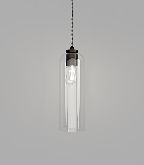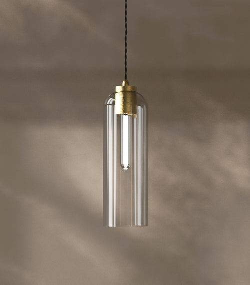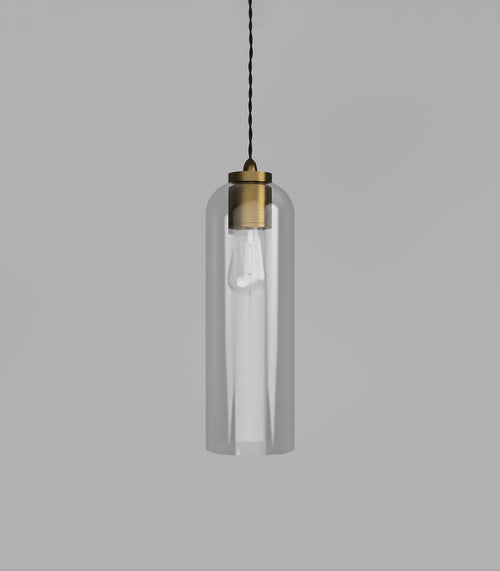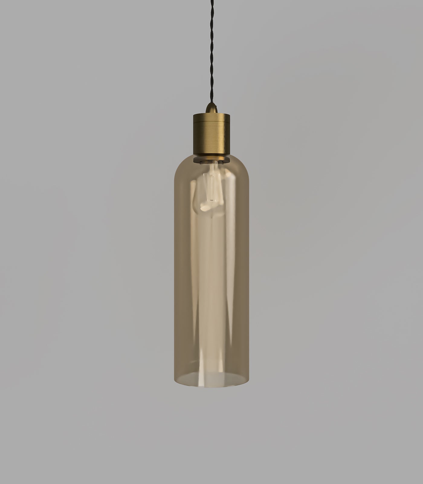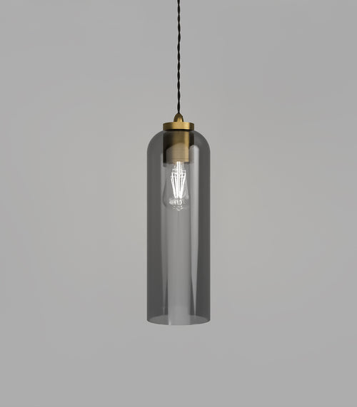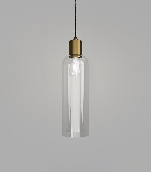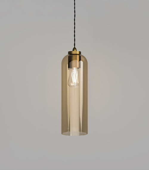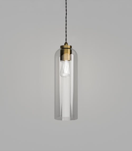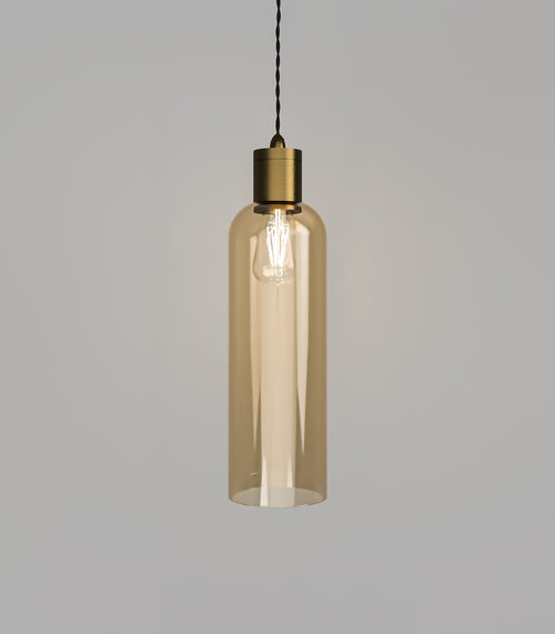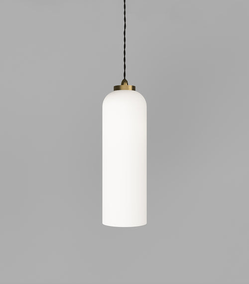 Parlour Elong Pendant Light by Lighting Republic features a glass shade that is classically transitional and elegantly stylish. The variety of finishes combined with a brass suspension provides a beautiful luxe product suited to many environments.