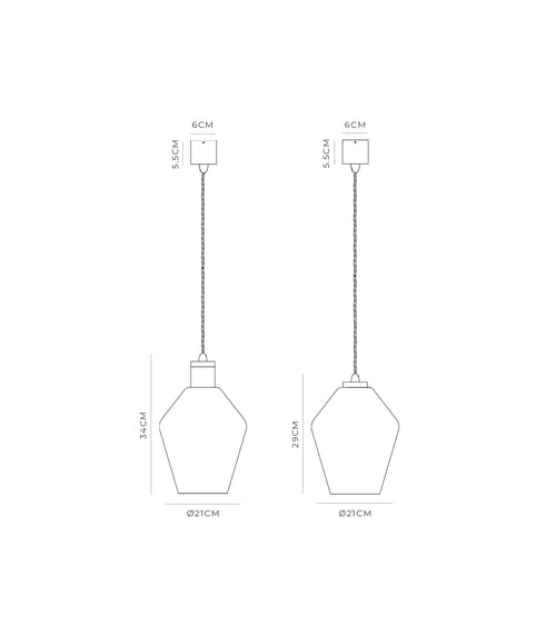 The glass can be installed in two different positions to elongate or shorten the height of the fitting.