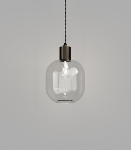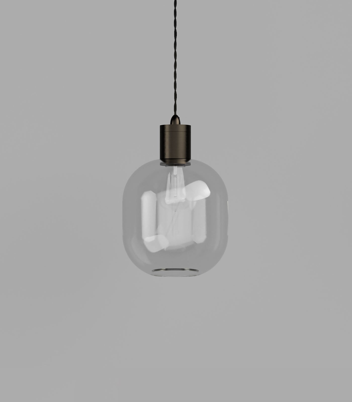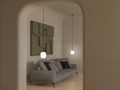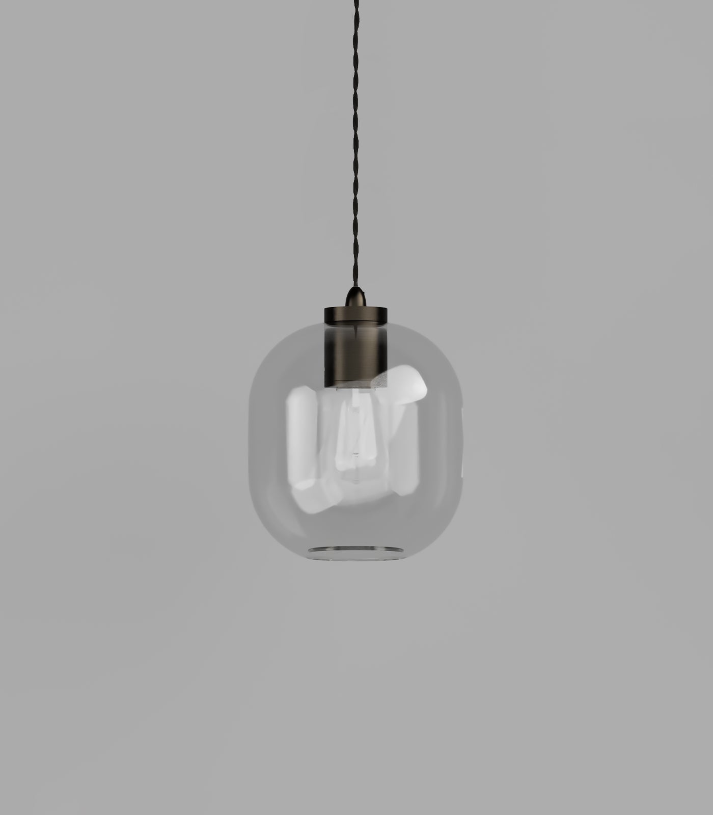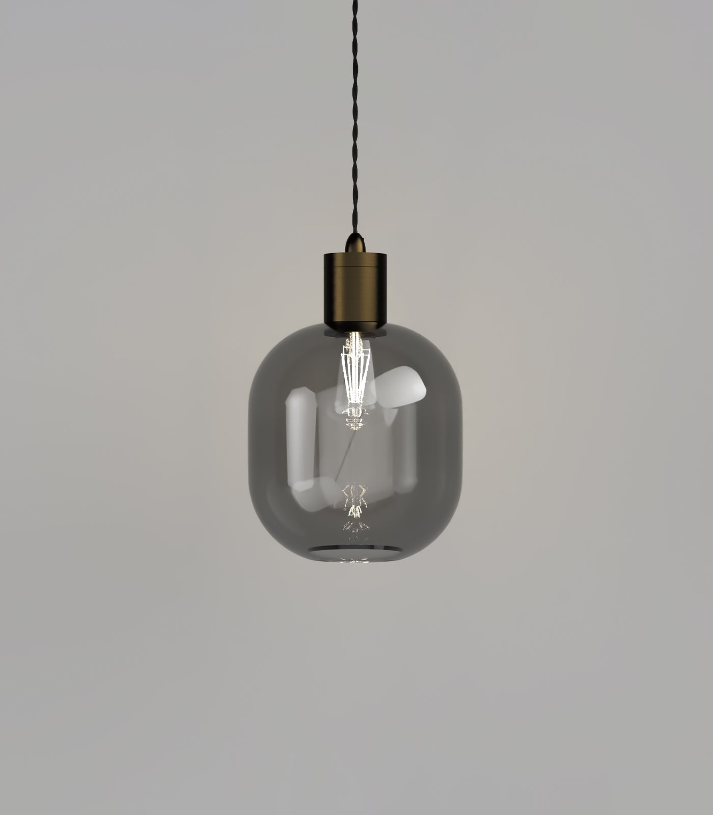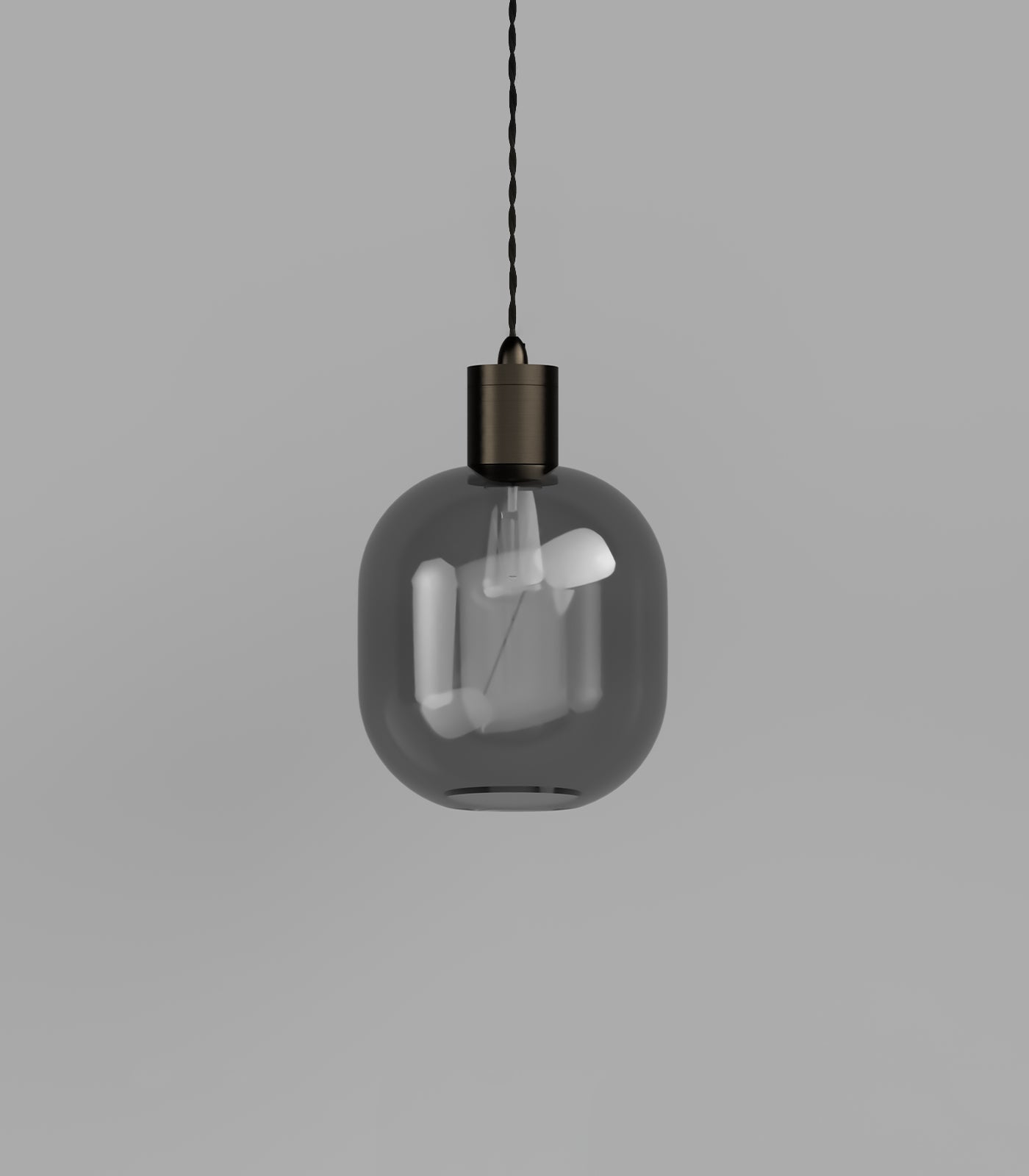 The Curve shade is available in three different finishes: White, Clear or Smoke. The shades can be mixed and matched with either of the two suspension finishes to get the desired effect. The glass can be installed in two different positions to elongate or shorten the height of the fitting.