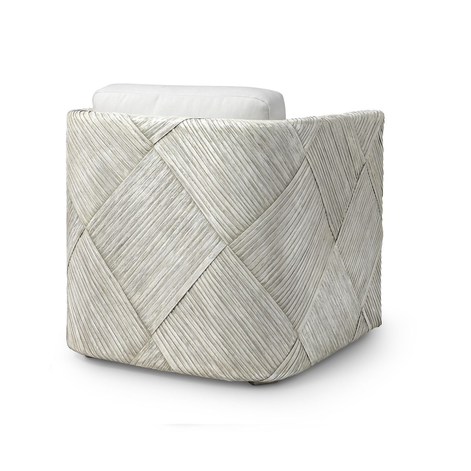 DescriptionHand-woven rattan slats in a whitewash finish are intricately placed over a large pole rattan and wood frame. Lounge chair comes with a fixed upholstered seat and loose back cushion. Coordinates with the Portrero collection.