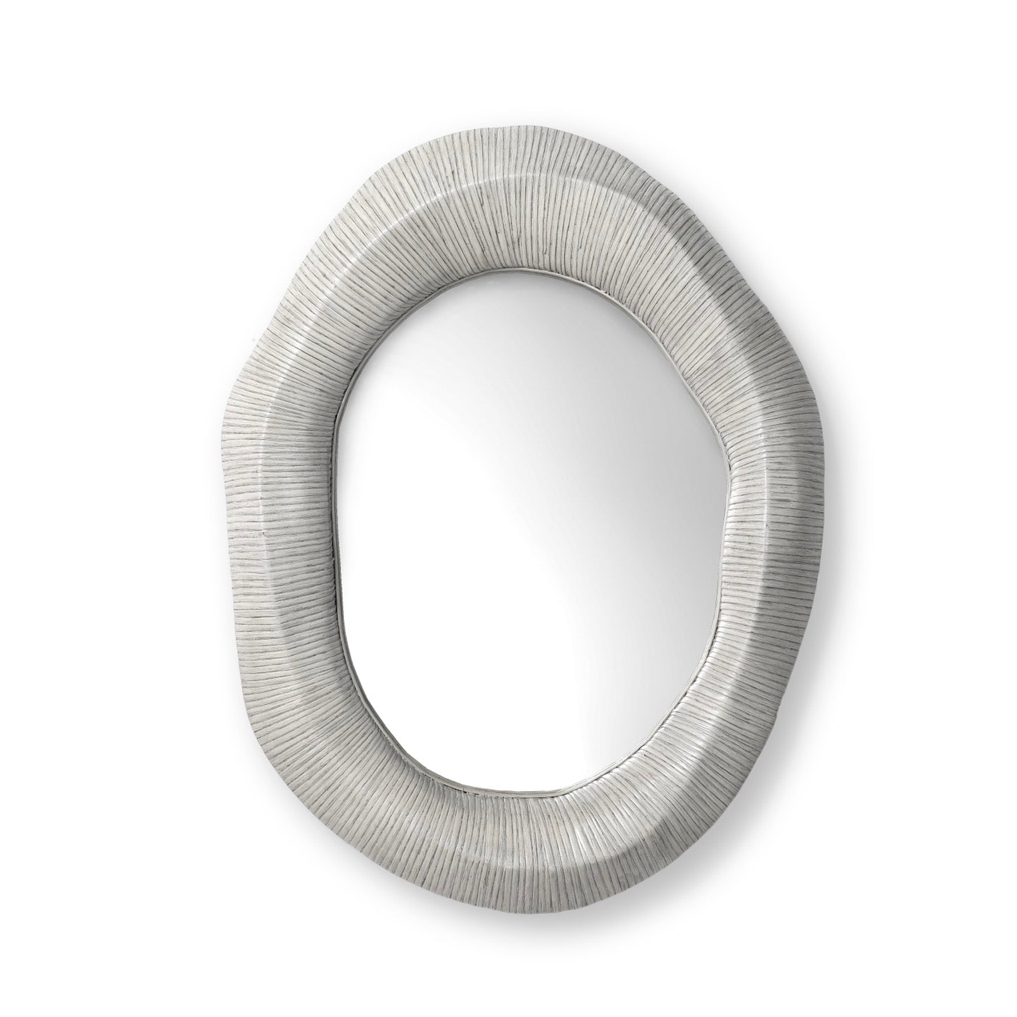 DescriptionMirror features split rattan hand-wrapped and intricately placed over a sculptured pole rattan and hardwood frame in a whitewash finish. Mirror is complete with metal cleats for mounting.