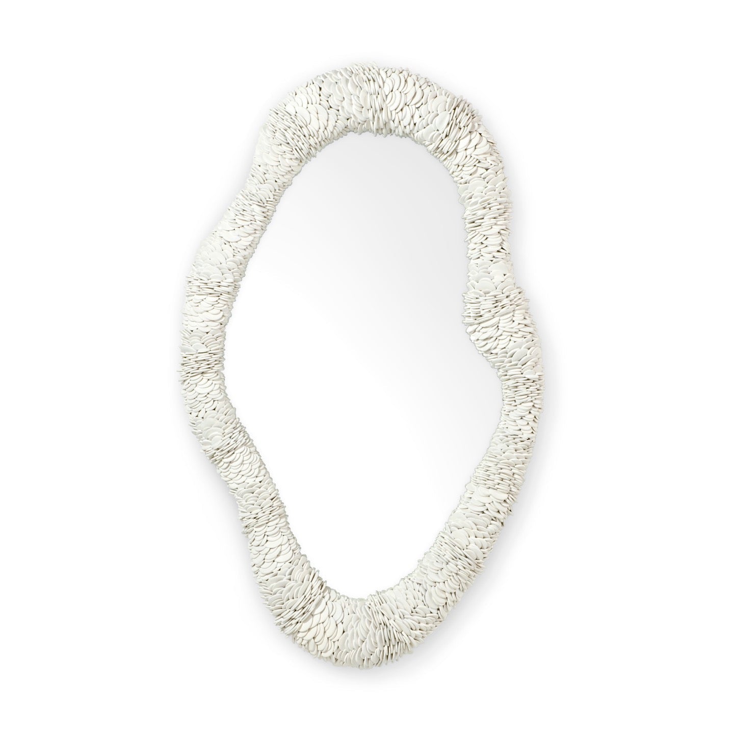 DescriptionHand-cut wood discs in a white finish placed over a fiberglass frame. Mirror comes with metal cleats for mounting both vertically and horizontally.