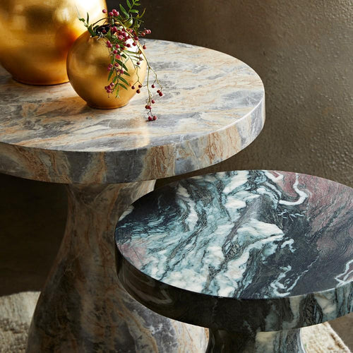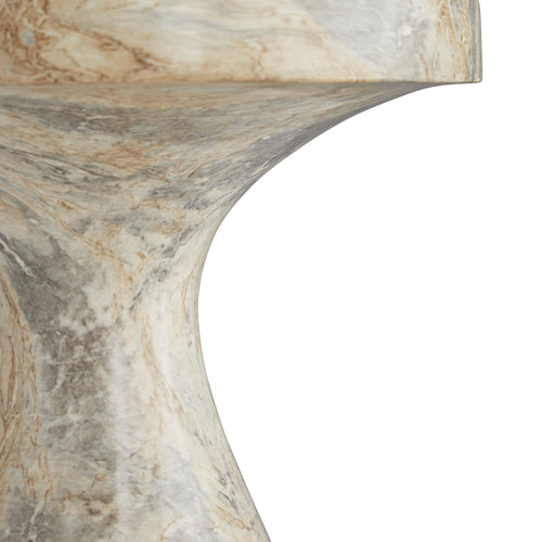 DescriptionTricky like trompe l’oeil this stunning table has a secret—though it looks to be made completely of stone lift it and you’ll discover it’s actually much lighter in weight. Made from lightweight concrete its marble-like façadeis made in a process called hydrographics. Since the process is done individually each piece will have a look that varies slightly in veining and color scale. It is also available in a darker palette and smaller scale (5549).