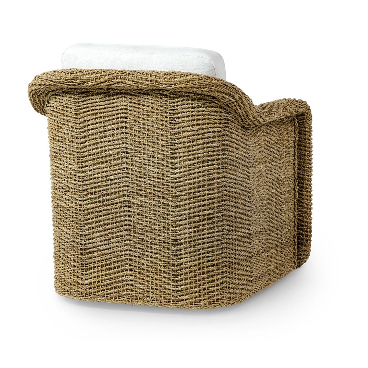DescriptionPole rattan and hardwood frame fully woven with lampakanay rope and wicker details all in a natural finish. Chair features a 360 degree swivel and comes with a fixed upholstered seat, front apron and loose back cushions.