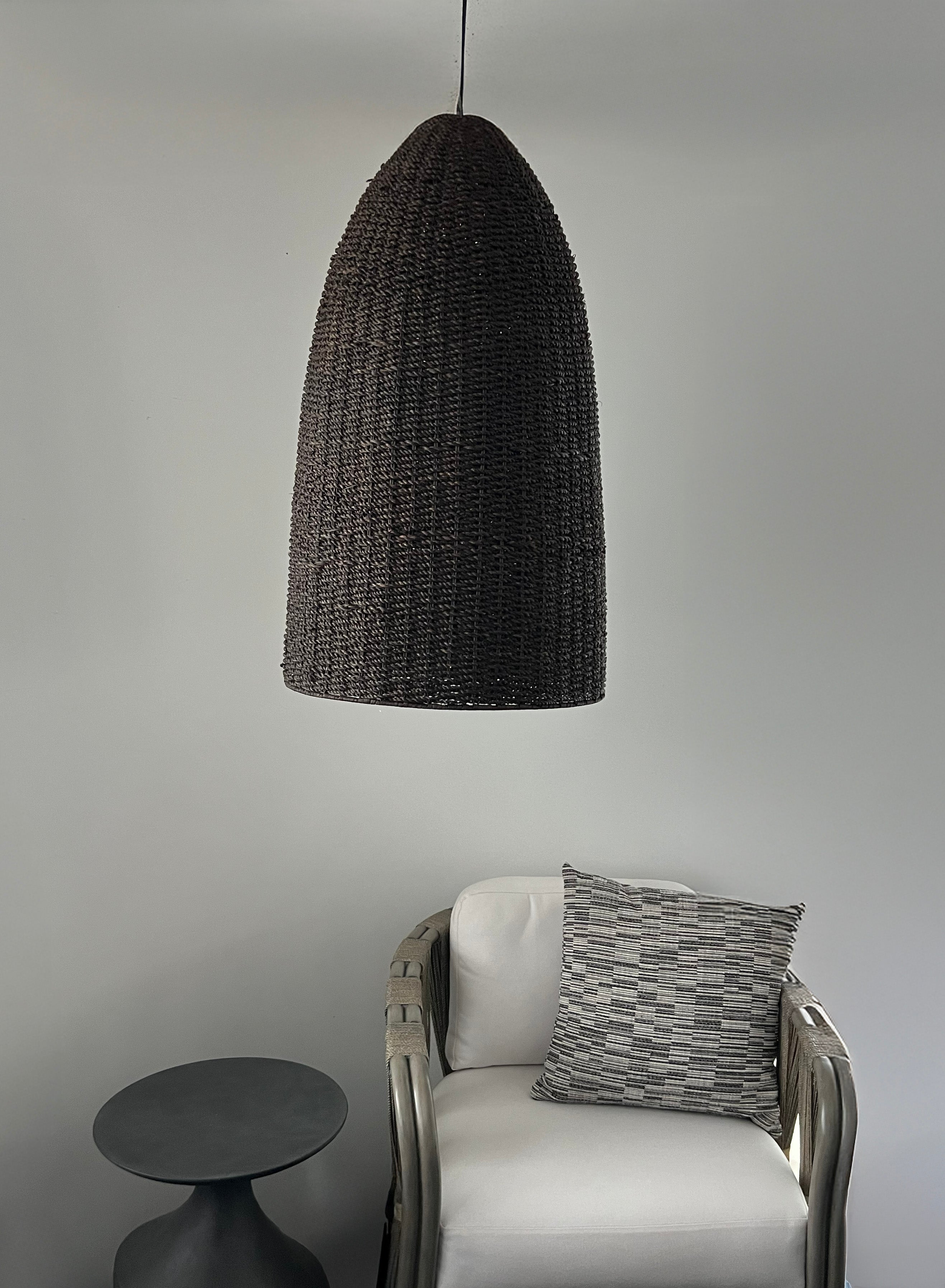 This refined dark rattan pendant showcases the artistry of natural weaving, where carefully selected strands are layered to form an architectural pendant that diffuses light with subtle warmth. The deep, earthy tones evoke understated luxury, while the organic texture adds visual depth to contemporary and classic spaces.