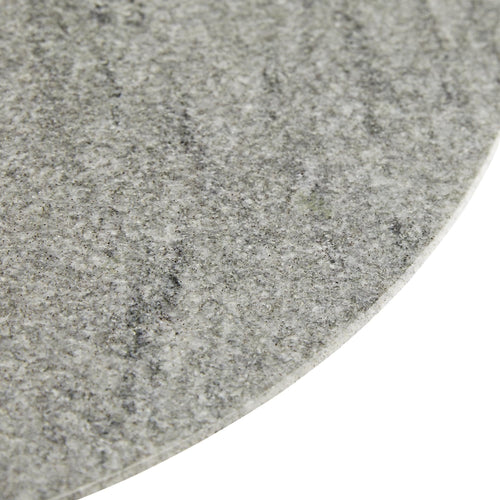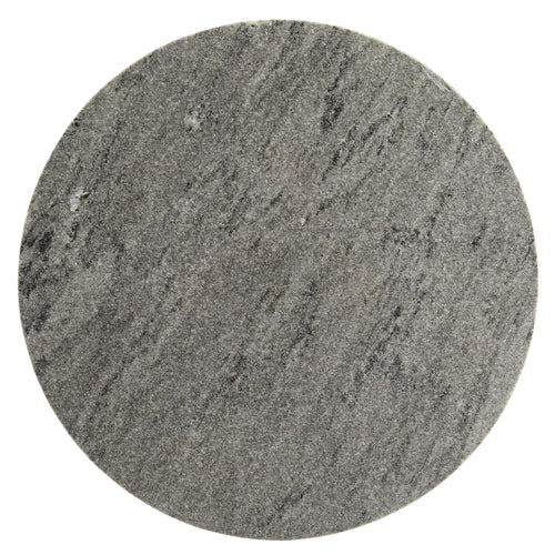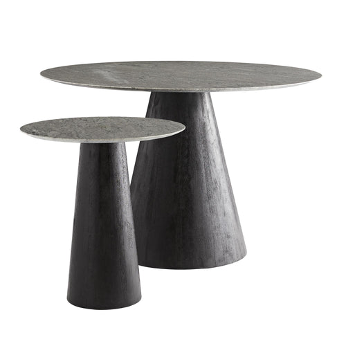DescriptionTraditional design and mixed materials compose the clean-lined silhouette of our Theodore Side Table. A round gray solid marble top is fashioned to a tapered wood base that has been sandblasted in an ebony finish. The beveled edge of the marble top adds depth and dimension while the dark stain of the finish accentuates the wood's natural textures. For a larger version see our Theodore Dining Table (6855).