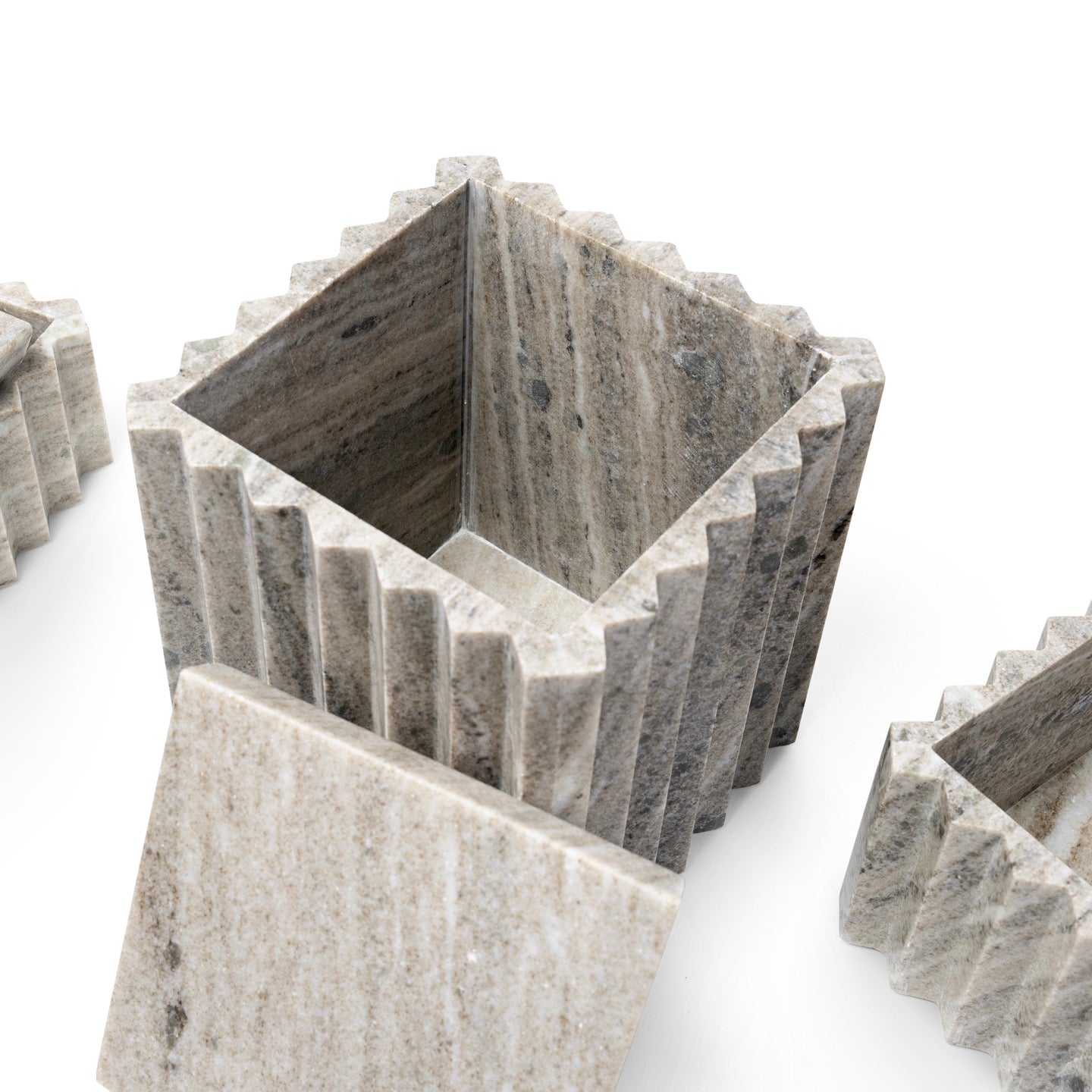 DescriptionBox features hand-chiseled marble in cream, ivory, beige and grey tones on inside and out with a lift-off lid. Marble is a natural material and will vary on color and grain, no two pieces will be alike. Coordinates with the Umbria collection.