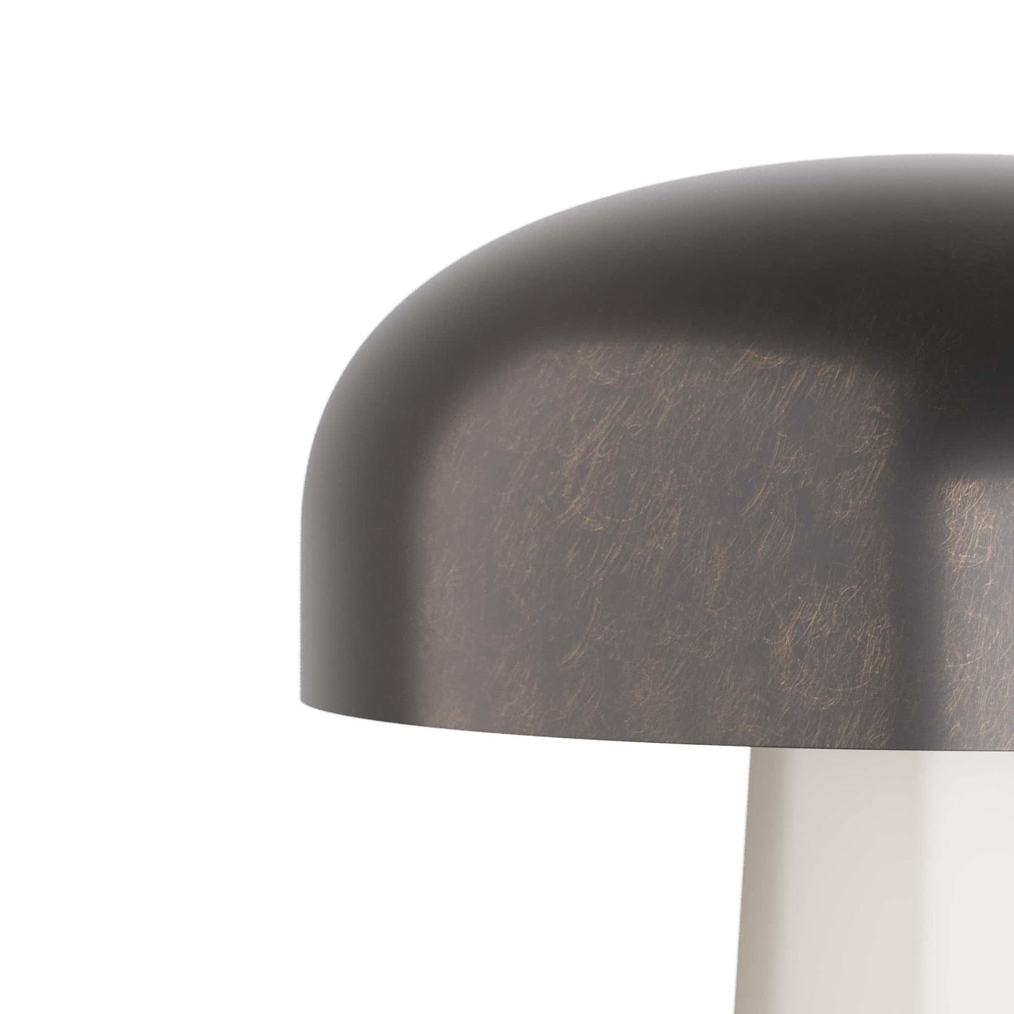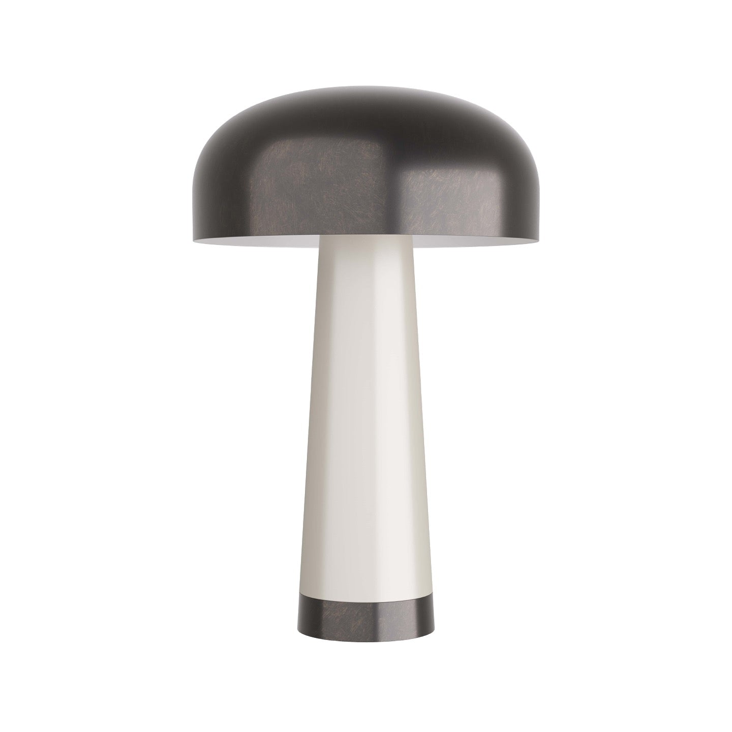 DescriptionThe stylized table lamp features a domed steel shade in lustrous english bronze and a tapered base in contrasting taupe enamel that is detailed with a band of bronze. Finish will vary