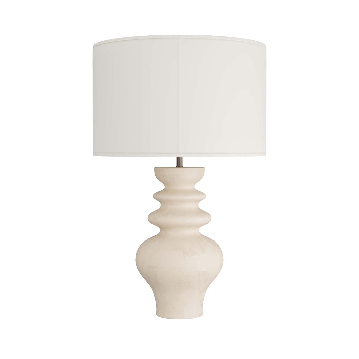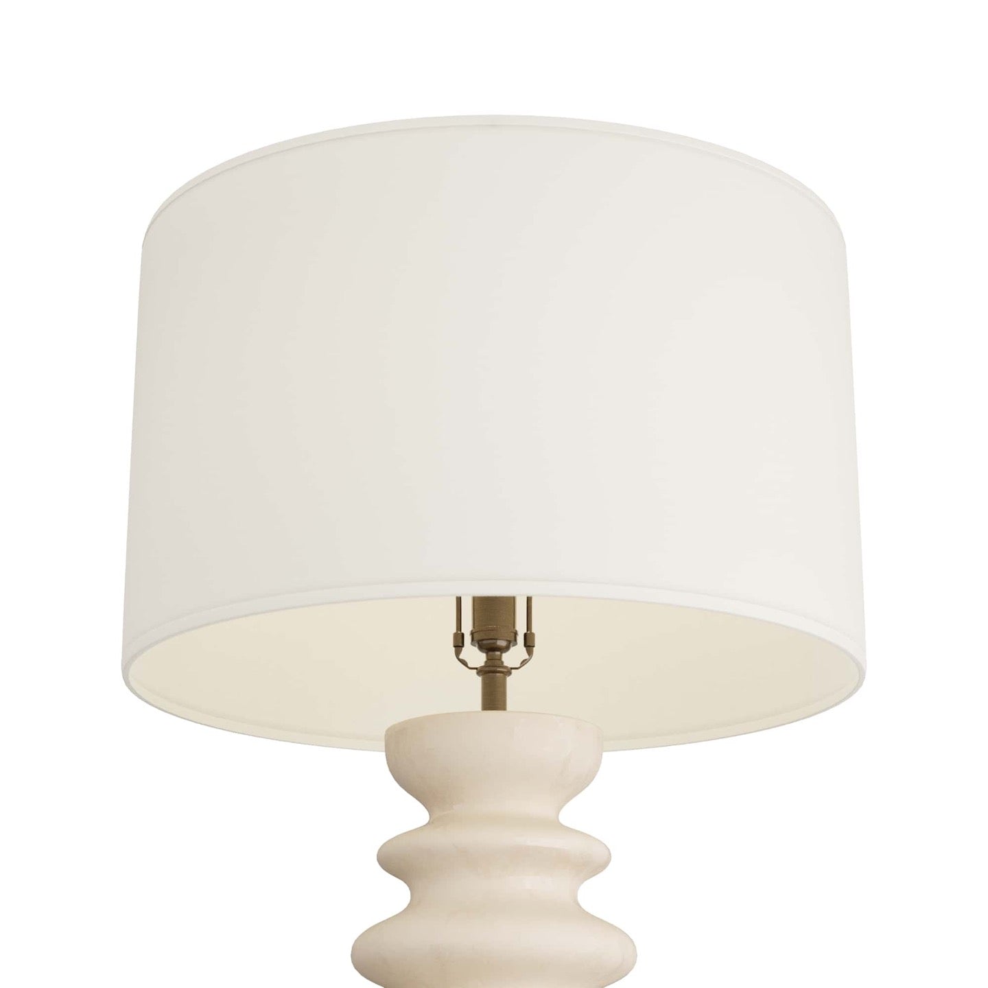 DescriptionCrafted in soft matte ivory ceramic, the table lamp is at home in any stylistic environment. The piece is finished with a folded-edge, ivory microfiber drum shade that is lined in ivory microfiber. Finish will vary