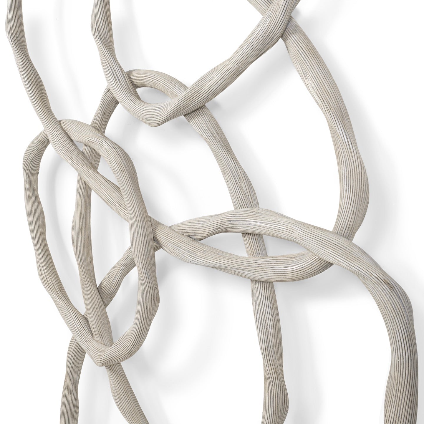 DescriptionCore rattan in a whitewash finish hand-bent and laminated over a pole rattan frame. Texture, size and shape may slightly vary. Wall decor comes with metal triangle brackets to mount both vertically and horizontally.